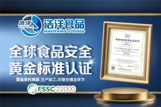 今年8月初,浩洋食品成功取得FSSC 22000认证,这一国际公认的食品安全管理体系认证进一步巩固了公司品质控制,为产品质量提供了有力保障。这一成就也体现了浩洋食品“聚势而生”的发展理念,通过整合资源、积累优势,不断提升品牌竞争力。
