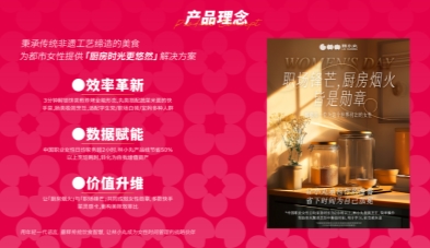 现代职场女性工作繁忙,但同时又对家庭饮食质量有较高要求。通过主打场景化烹饪,提供菜谱设计。为经销商客户在终端能够引导消费者结合产品针对不同场景的餐食需求,在短时间内准备出美味、健康的餐食,大大减轻烹饪负担。