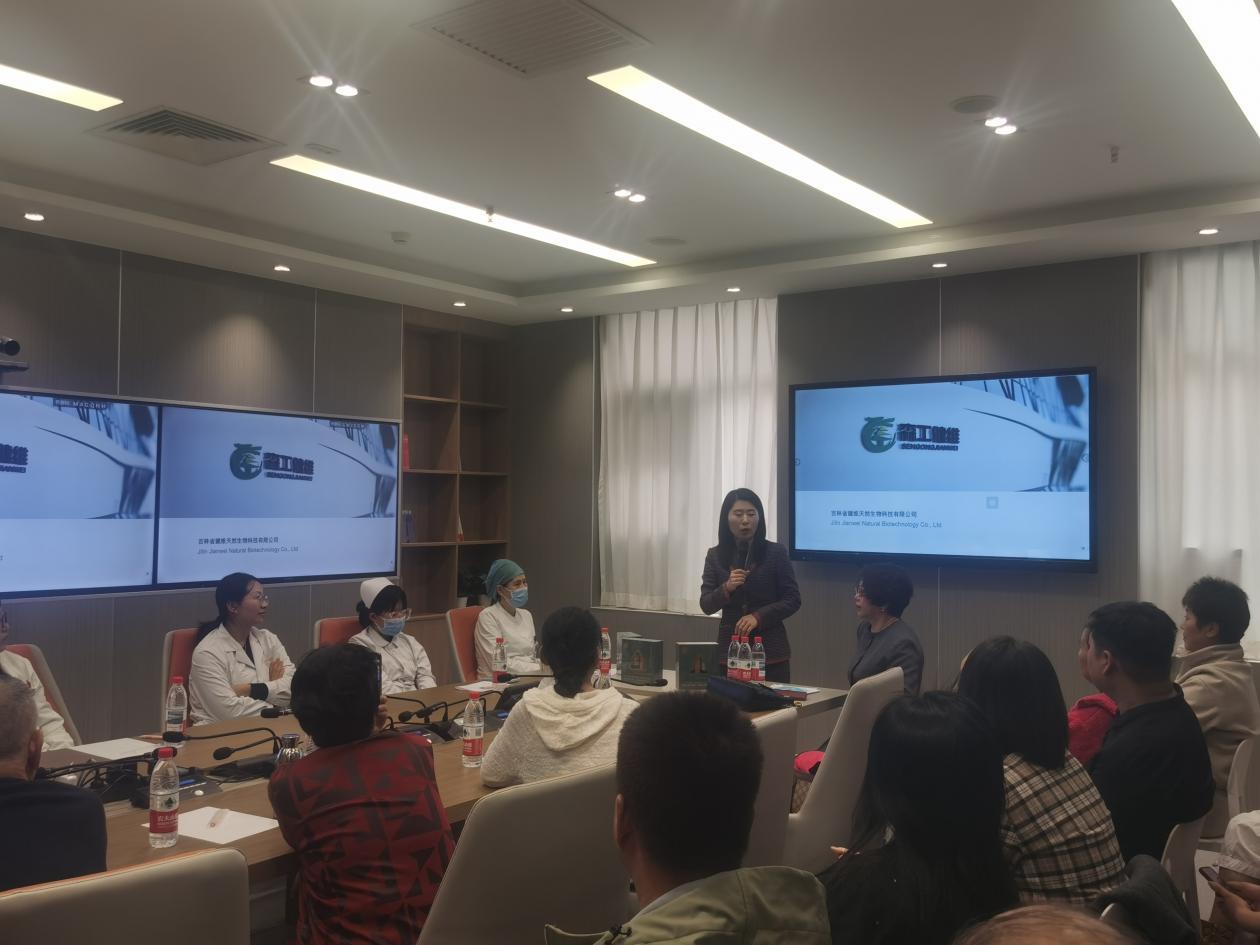 随后,吉林森工健维营销部长由娜就公司价值远景及二氢槲皮素产业情况进行汇报。她详细介绍了产品的生产标准与质量体系,重点解读了北京经销商合作模式,着重突出了产业发展的合规性与市场适配性,为产学研合作及市场推广提供了清晰思路。