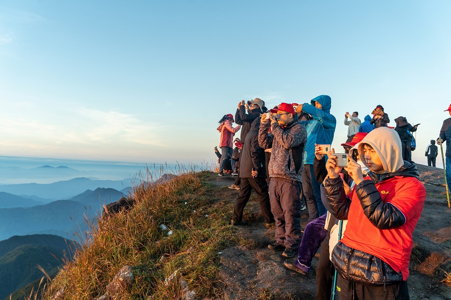 23日凌晨5时,大家早早地爬出帐篷,集体登顶赣南第一高峰齐云山最高处,体验了“会当凌绝顶,一览众山小”和“壮美云海、日出东方”的震撼视觉盛宴。